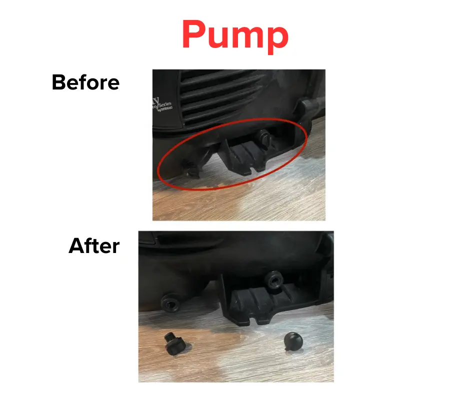 3. Remove the two (2) plugs on the right side of the pump and let the water drain out completely.